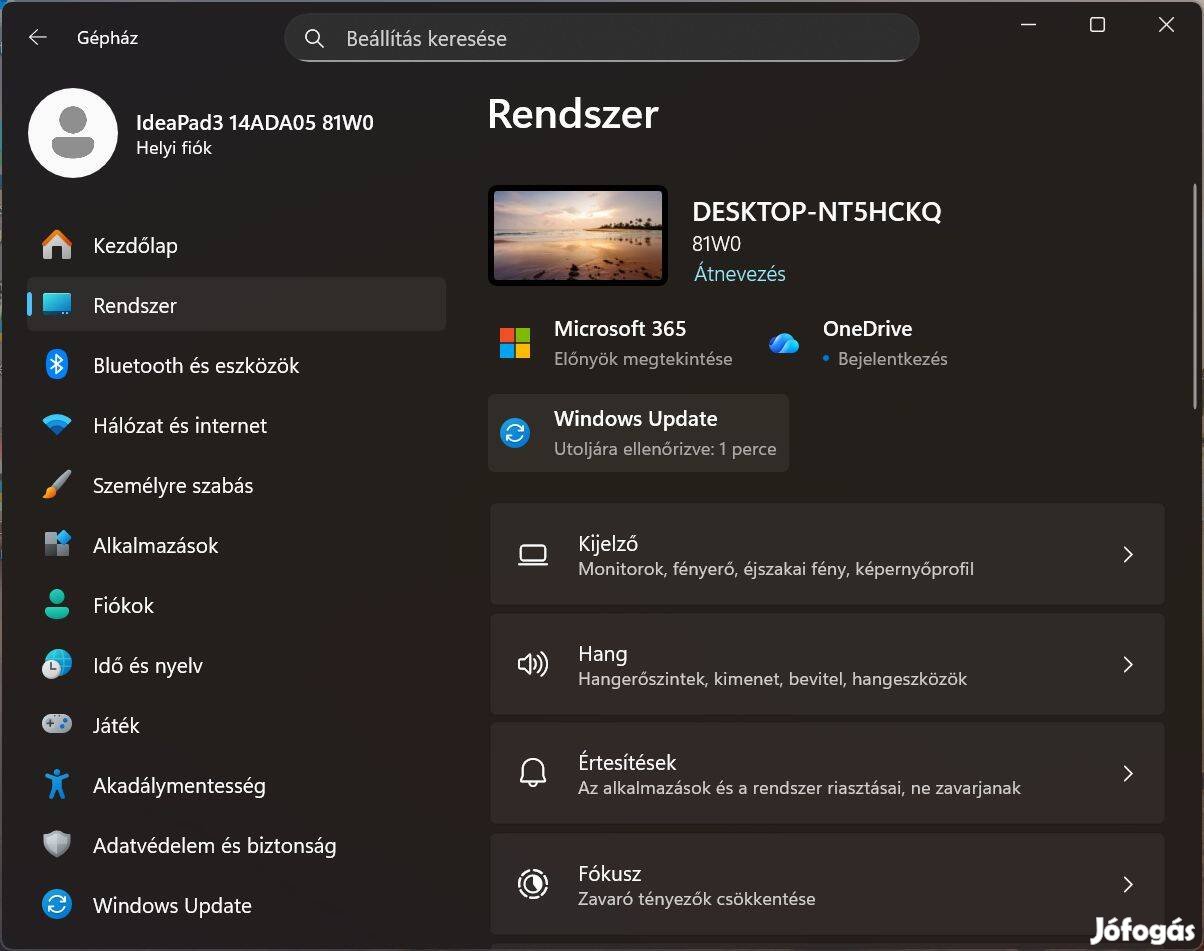 Új akkumulátor és új hűtő ventilátor! Eredeti dobozában eladó használt, de jó állapotú Lenovo Ideapad 3 14ADA05 81W0 laptop, WIN 11 Home.