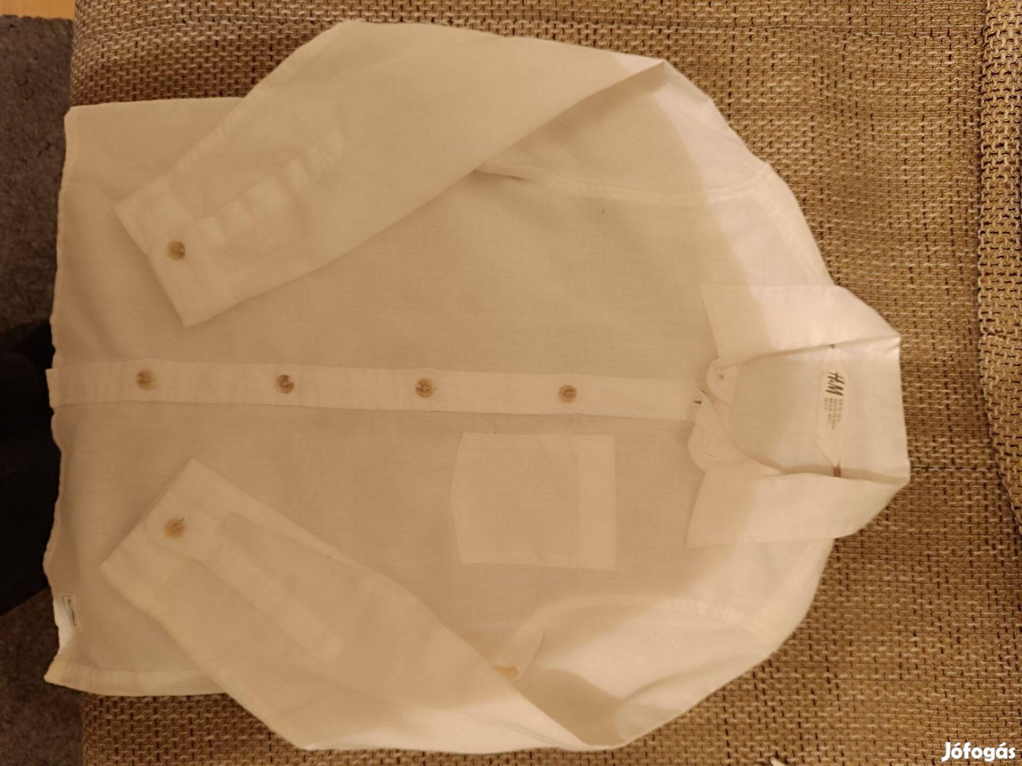 Néhány alkalommal viselt, 122-es méretű, fehér lenvászon ing.