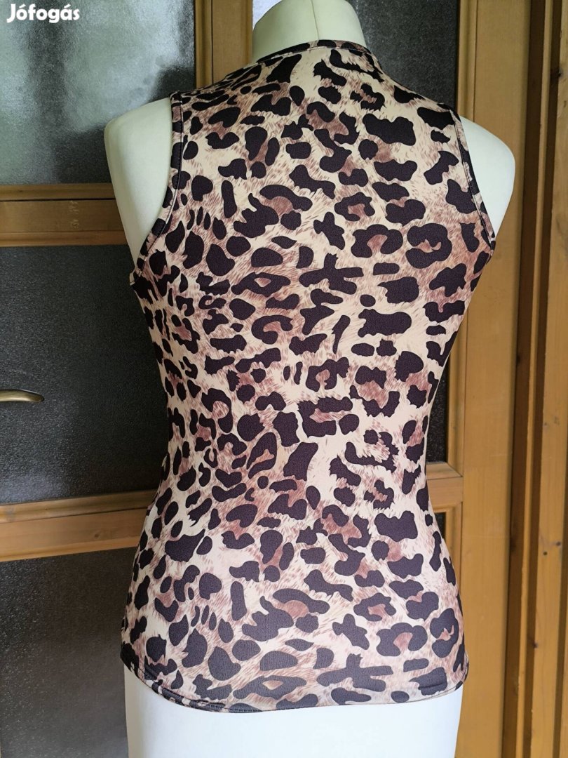 S méretű, Shein, leopárd mintás, testhez álló trikó felső, rugalmas anyagból.