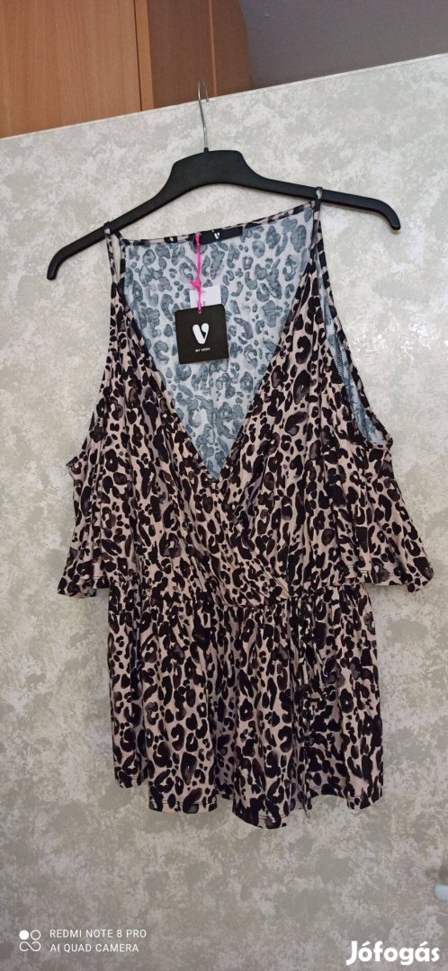 Leopárdmintás nyitott vállú, divatos viszkóz felső 50-es méretű, vadonatúj állapotú, címkés, anyaga: viszkóz 3500 Ft-ért eladó.