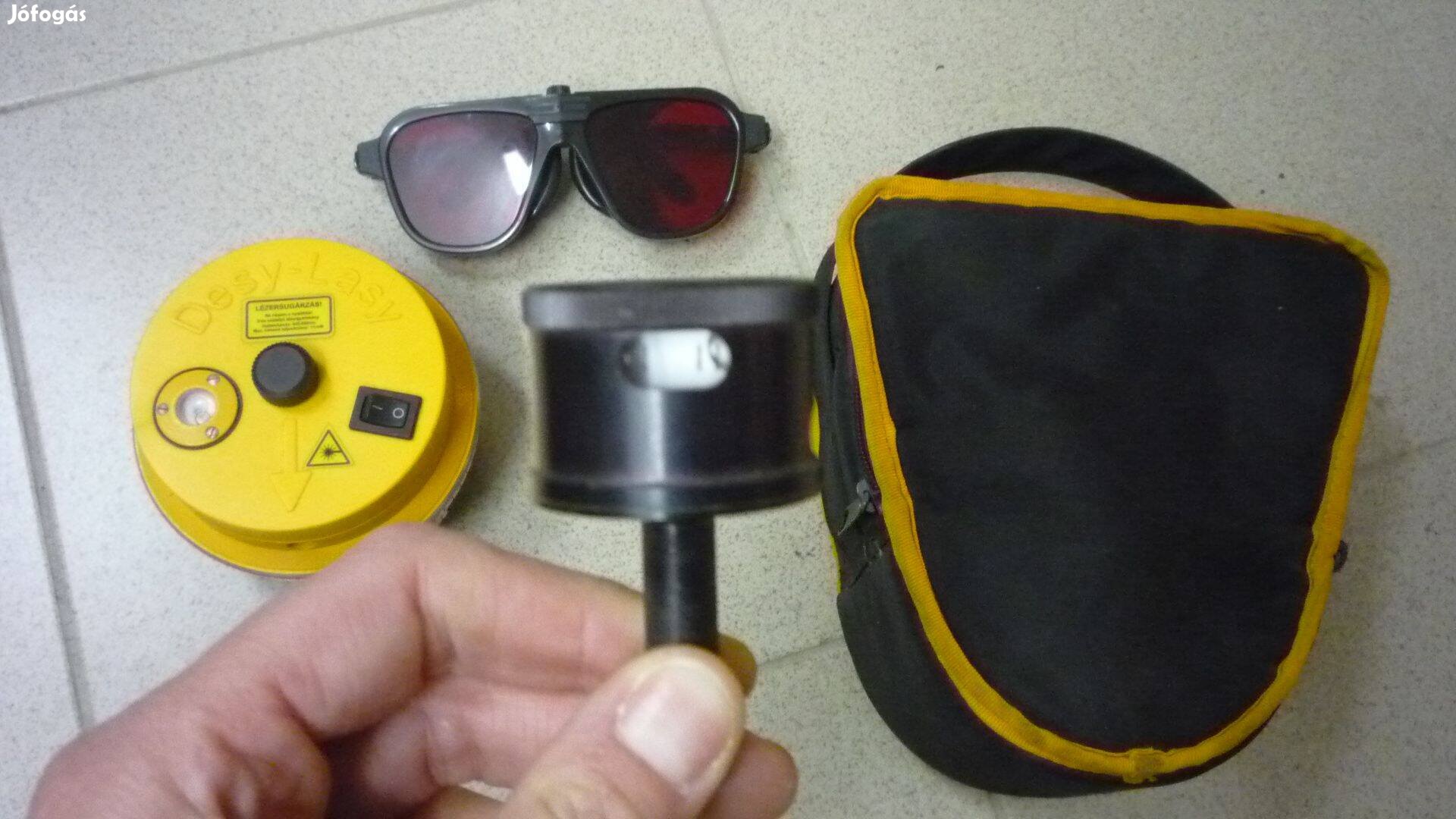 Eladó a képeken látható lézeres síkkitűző berendezés,vonal, pont és derékszög kitűző adapterekkel, lézeres szemüveggel és