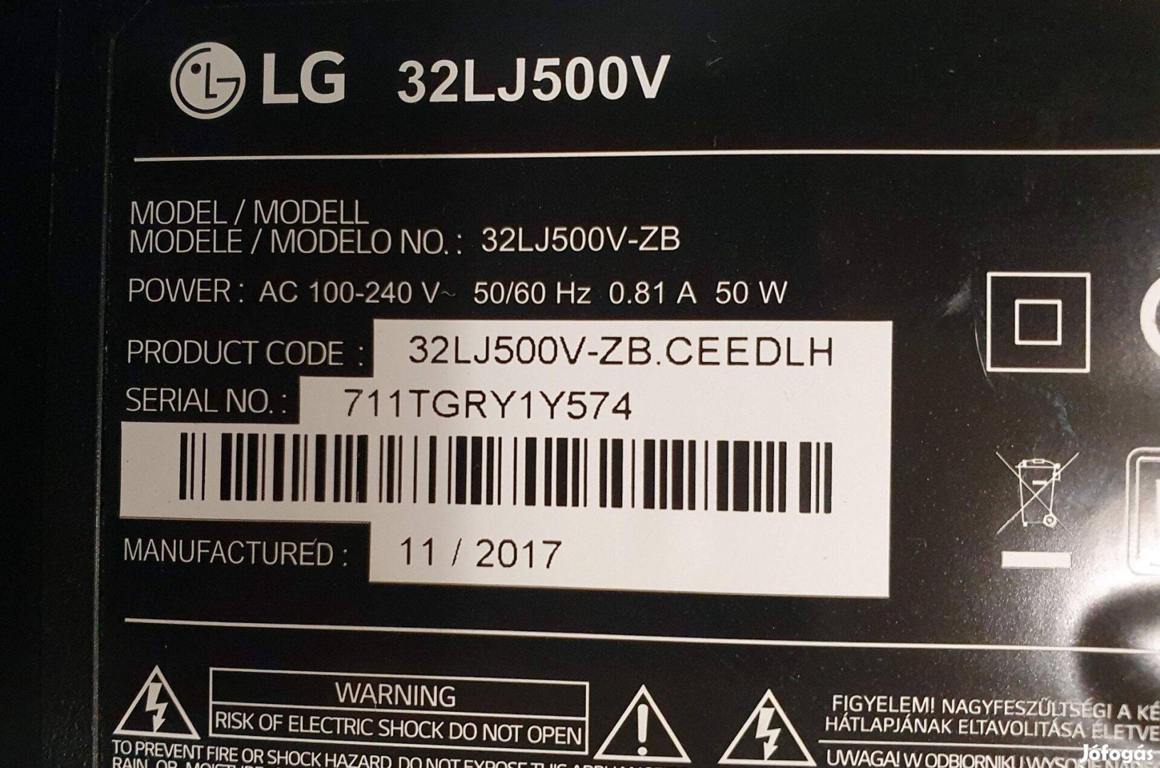 Lg 32LJ500V LED tv mainboard és tcon 32T42-Cok CTRL BD