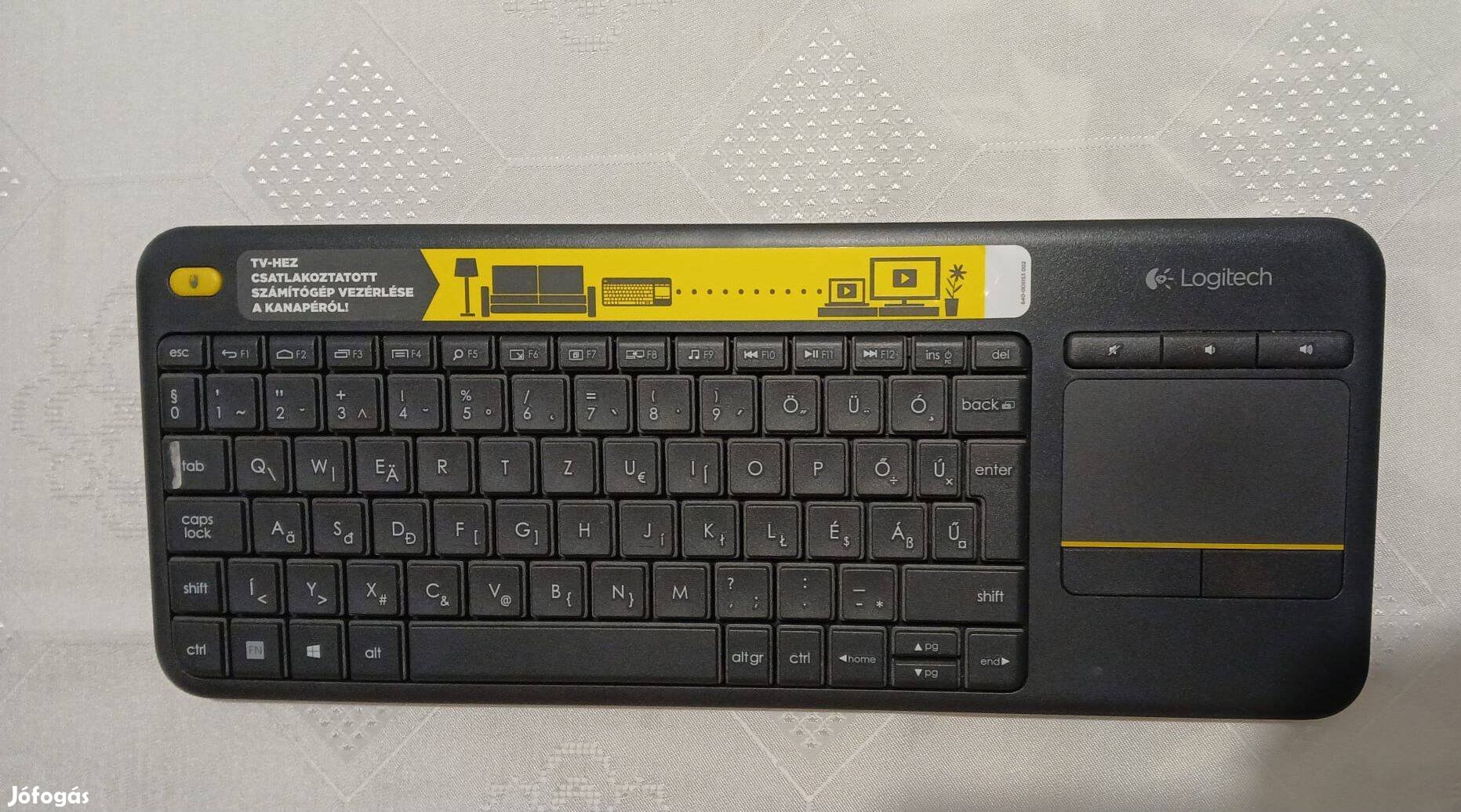 Eladó a képeken látható Logitech K400 vezeték nélküli, touchpaddel ellátott billentyűzet.