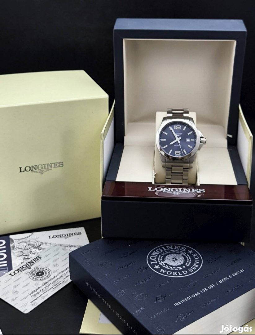 Eladó egy nagyon szép kék számlapos Longines Conquest L3.760.4.96.6 férfi óra, 43mm tokátmerő, Zafír üveg, Kék számlap, Svájci Longines L157 kvarc szerkezet, Nemesacél tok és szíj,full szettben.Az óra szép karcmentes állapotú,a szíj kb.19-20cm-es csuklóig jó.Kisebb értékű beszámítás lehetséges.