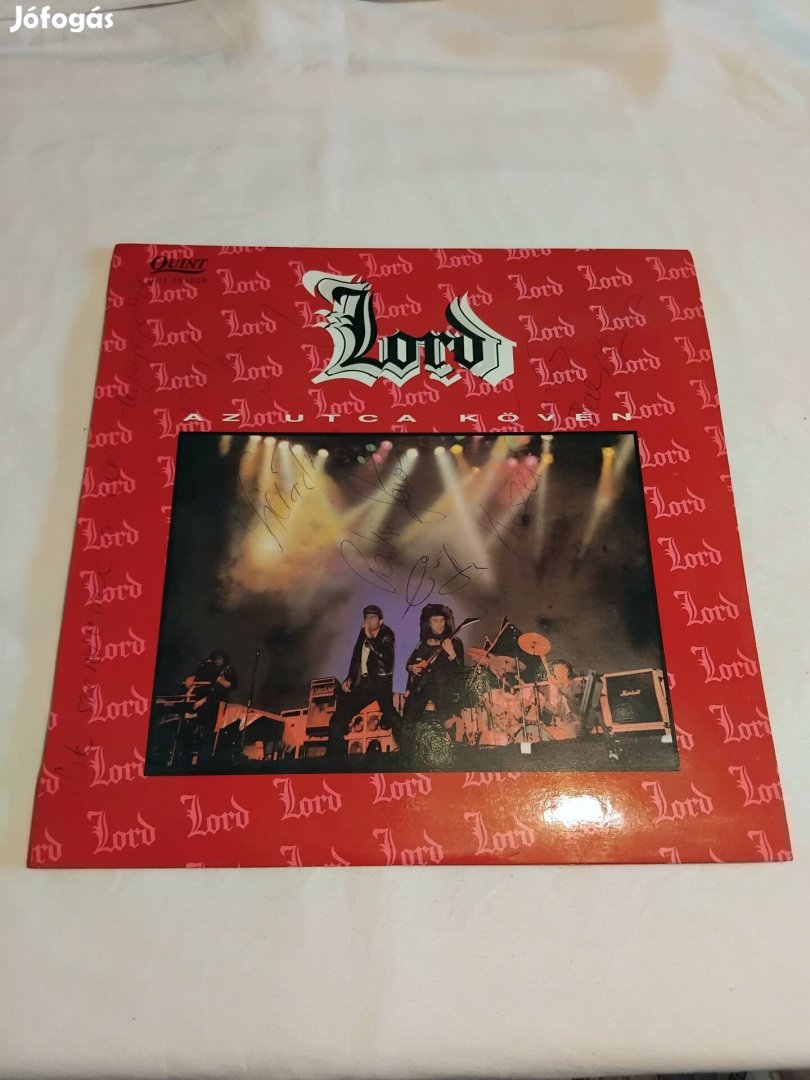 A Lord 1992-es tagsága által dedikált borító, Vida Ferenc, Paksi János, Keszei Tamás, Erős Attila es a szövegíró Balogh Ferenc aláírása a borítón.