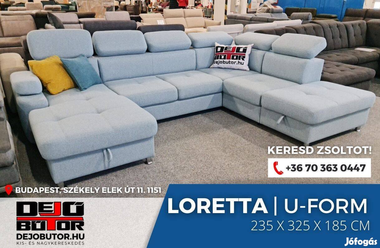 Loretta sarok kanapé bútor ülőgarnitúra 235x325x185 cm ualak kék fekvő 140x200 cm ágyazható ágyneműtartós 870.000 Ft