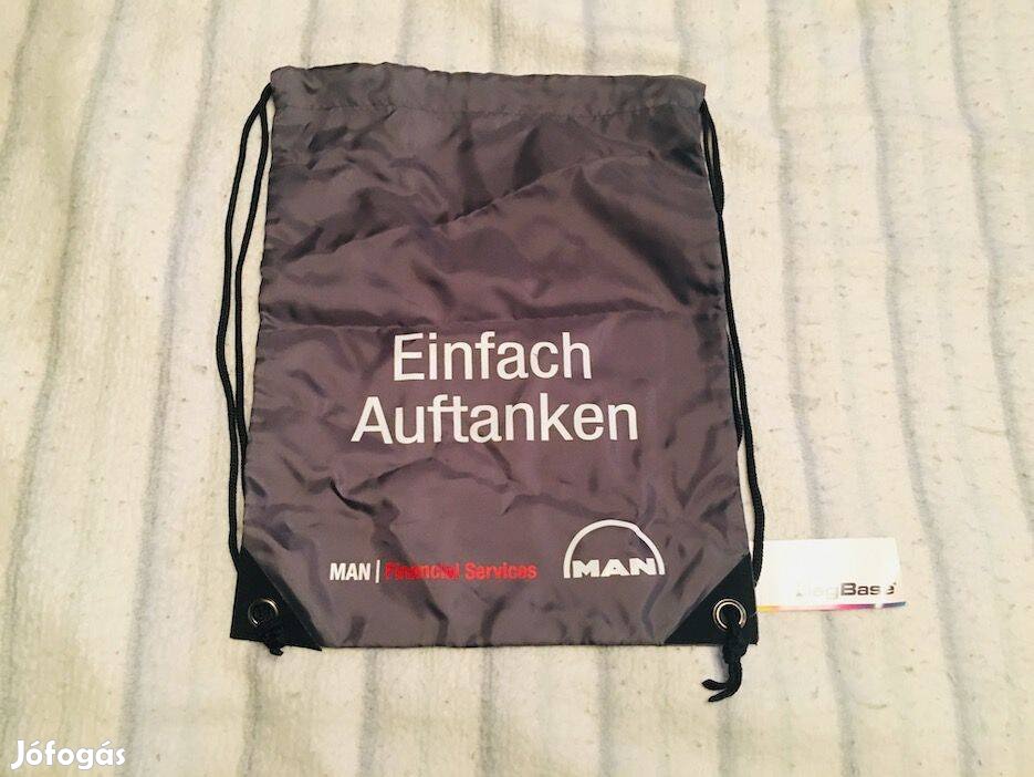 Eladó a német MAN busz, kamion- és teherautógyár szürke színű hátitáskája, edzőzsákja. Átlagos méretű zsák, kicsire összehajtható, kis helyen, akár zsebben is elfér. A termék vadonatúj!
