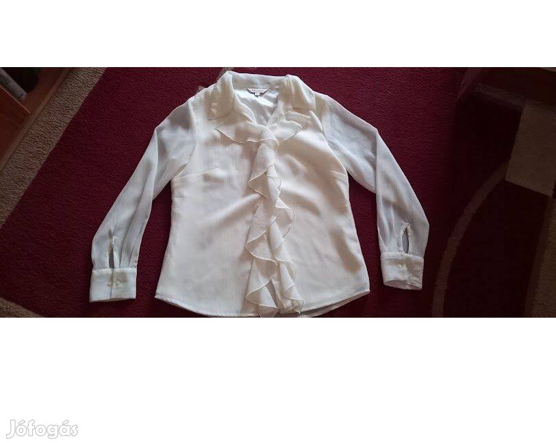 Hibátlan, dupla rétegű krémszínű zsabós blúz, hossza 60 cm, mellbőség 48 cm.