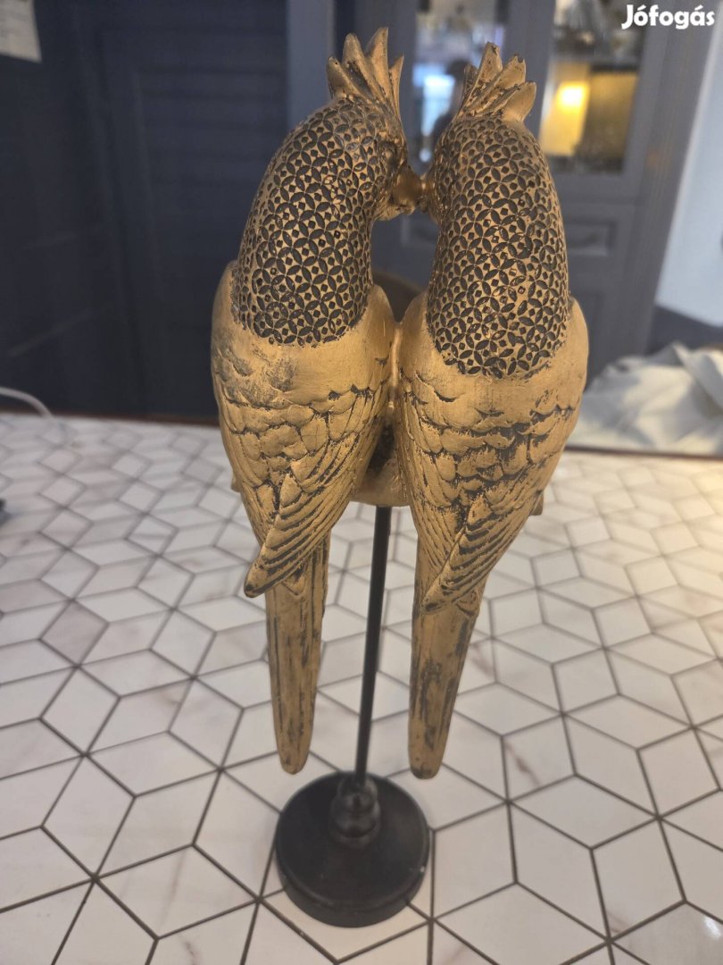 Papagáj dísztárgy, aranyozott színnel, 35cm