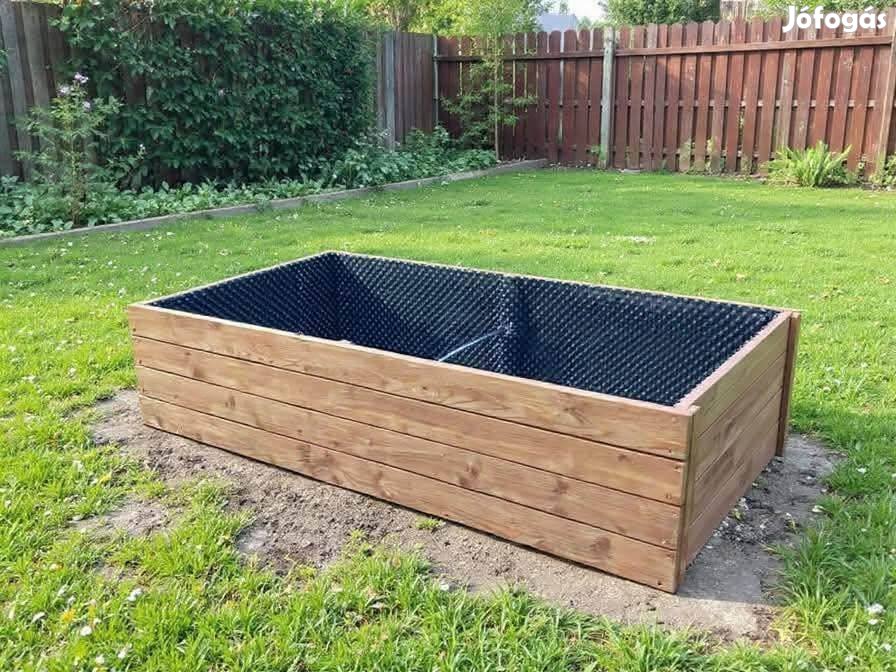 2,5 cm vastag deszkából, drénlemezzel bélelve és két rétegben lazúrral kezelve.