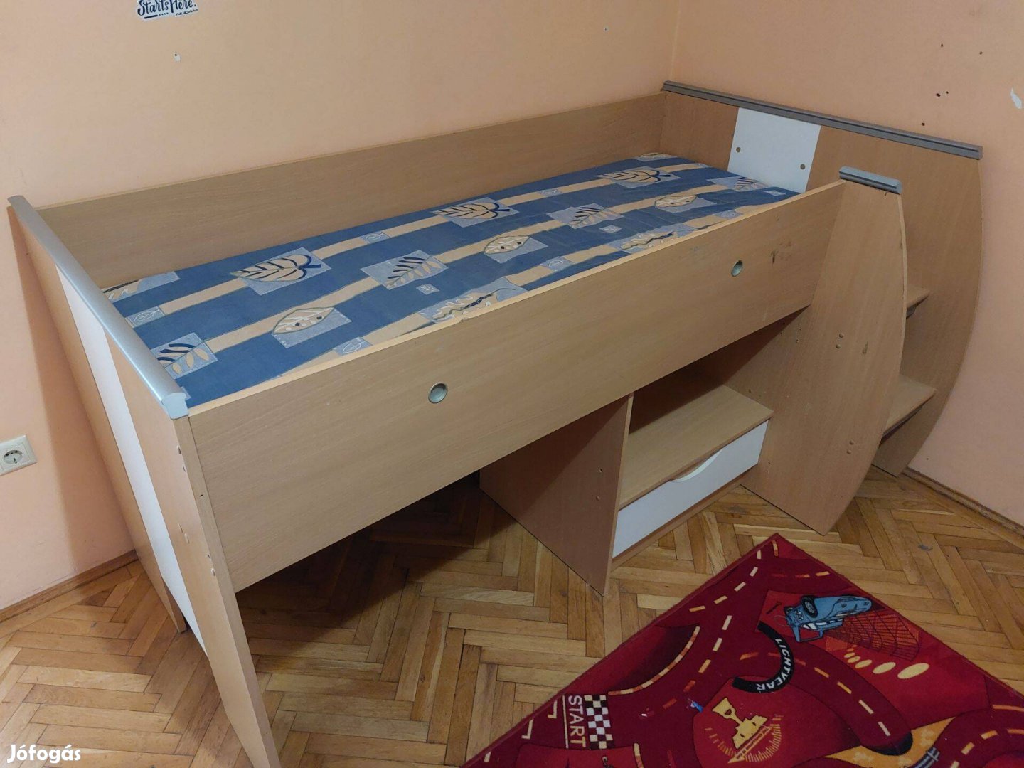 Eladó a képek szerinti emelt ifjúsági, vagy gyerekágy matraccal. A fekvőfelület 90×200 cm, az ágy kerete kb. 120 cm-en van. Két napja lett nagyobb egységekre szétszerelve, könnyen összeállítható, vagy lapra szerelhető.