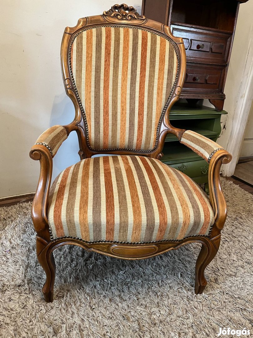 Kényelmes darab 100 cm magas a támlája 44 az ülőrész neobarokk fotel stabil massziv rendben van. 55000 ft bp.17 kerben