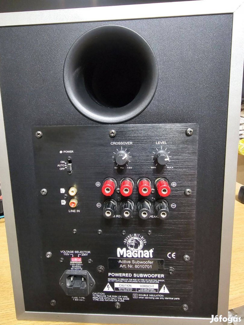 Eladó egy jó állapotú Magnat aktív subláda. 75/150W. 200mm-es mélynyomó van benne. Többféle állítási lehetőség. Az egyik hátsó sarkán van egy picike horzsolás, Ezt fotóztam . 16. kerületben kipróbálhatóak.
