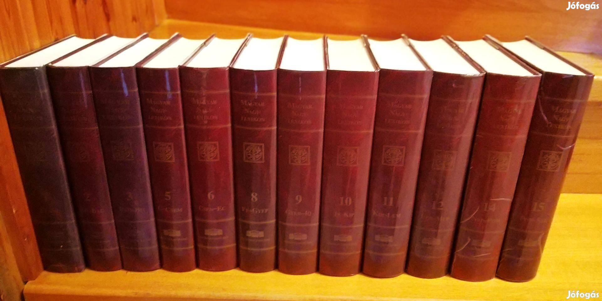 Eladó Magyar Nagylexikon 2,3,5,8,9,10,12,15 kötetei egyben 7600.-.