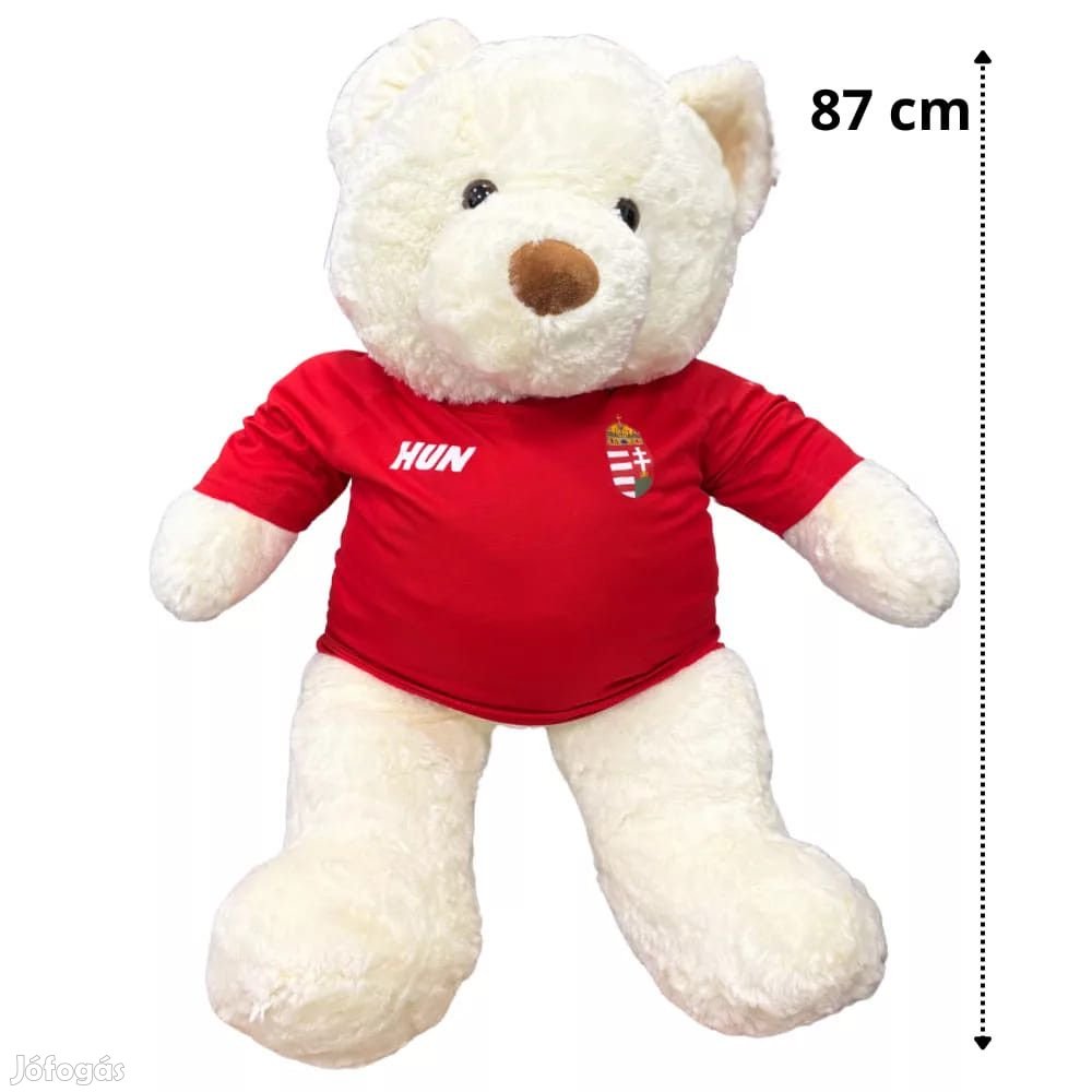 Ez a 87 cm-es, puha barna plüssmaci nemcsak aranyos, hanem igazi magyar szív dobog benne. A piros-fehér-zöld szurkolói felsőben minden meccsnap lelkes kabalája vagy épp a legölelni valóbb dísz a kanapén!