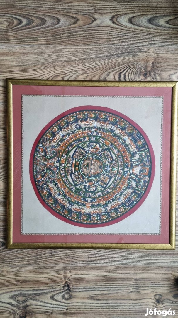 Eladó Majanaptár Mexikoból hozott 60X60 cm, bőrre festett, minőségi képkeretezésben.
