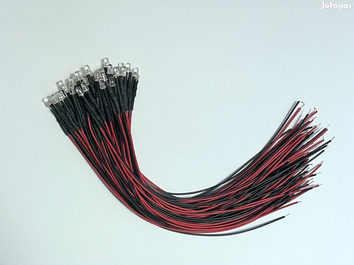 Eladó 20 db új 3mm-es RGB led 20 cm-es kábellel és előtét ellenállással. 3V-ról üzemel, gyors ütemben váltja a színeket. Ára 65 Ft/db.