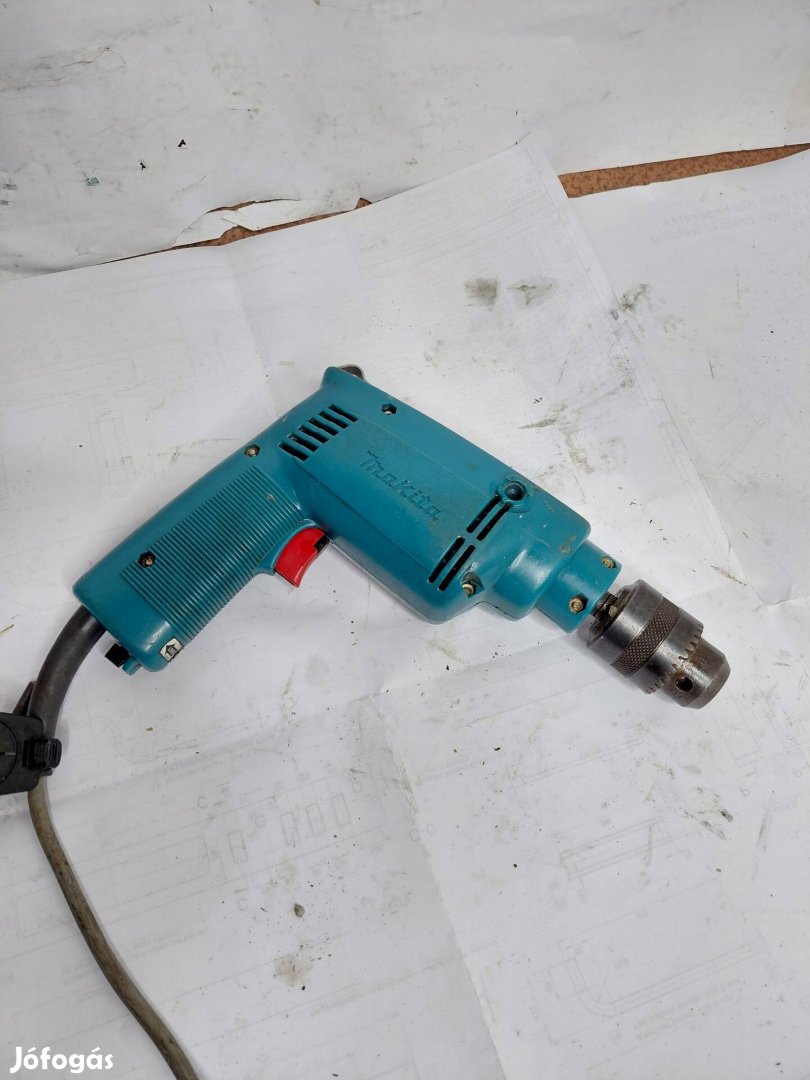 Eladó a képeken látható Makita pisztolyfúró. A gép minden funkciója rendben működik, szép egészséges hangja van. Sajnos adattáblája már lekopott, de olyab 500-600 W környéke lehet, fordulatszám szabályzós, irányváltós és tud ütve ia fúrni.