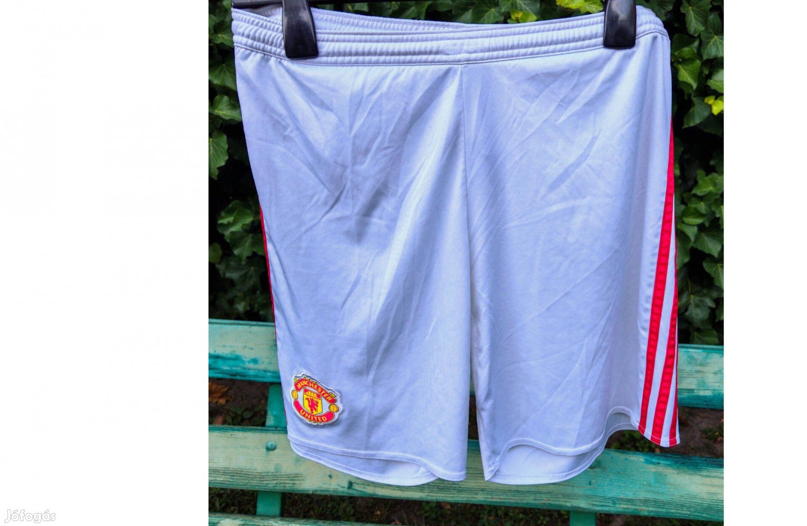 újszerű, de kiváló állapotban lévő eredeti adidas Manchester United fehér rövid nadrág