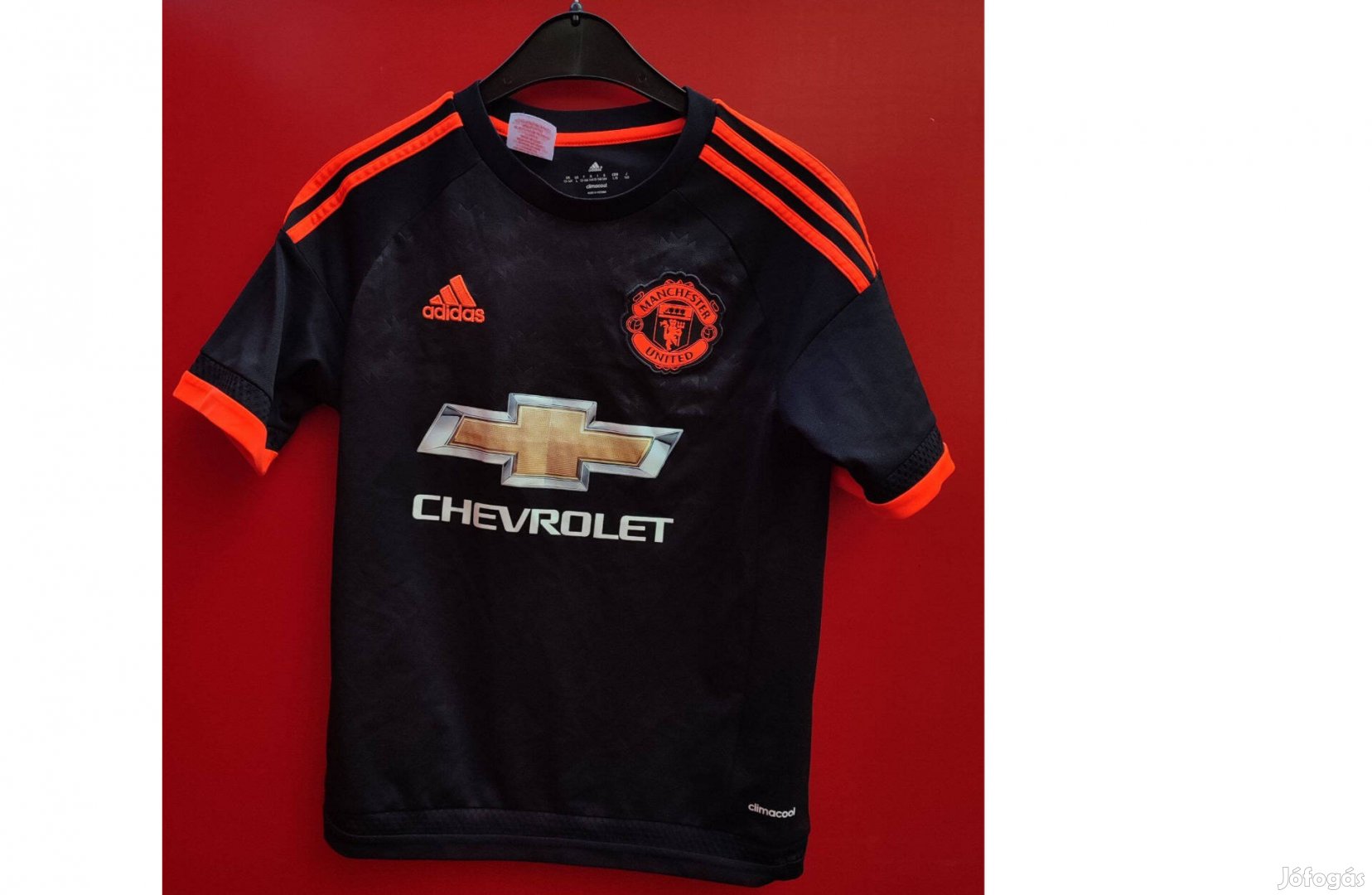újszerű, de kiváló állapotban lévő eredeti adidas Manchester United fekete piros 2015 gyerek mez
