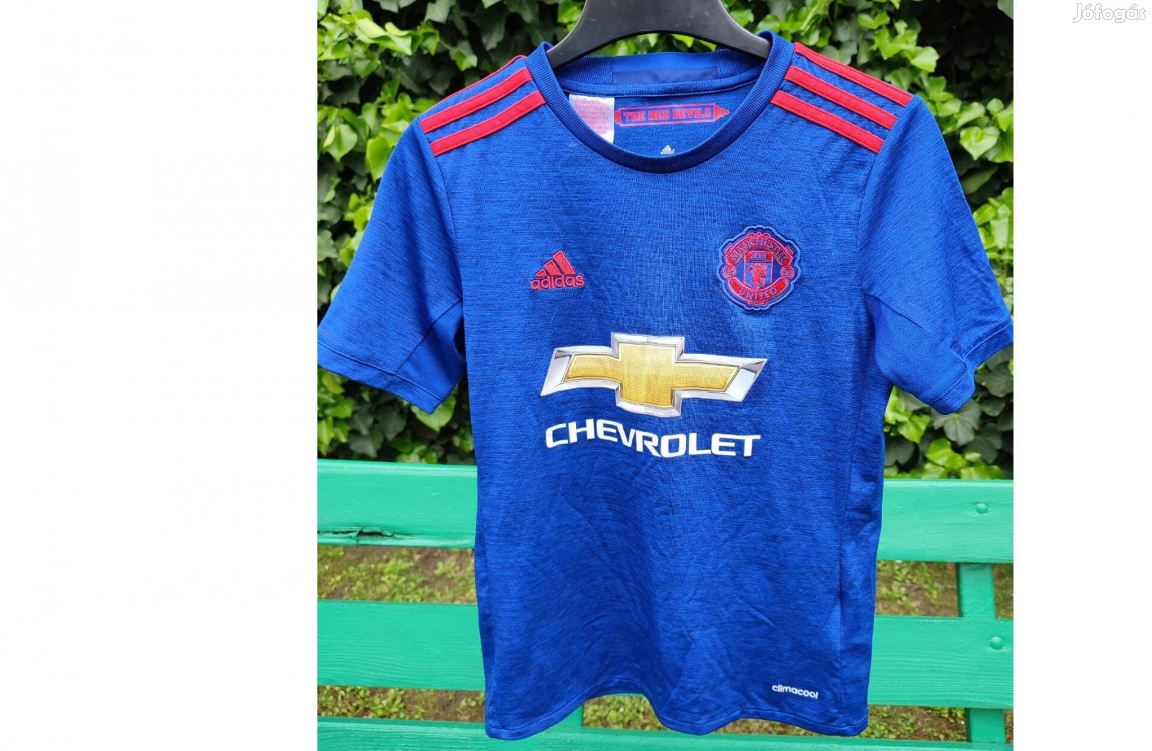 Elől Manchester United címer és adidas logó valamint Chevrolet szponzor felirat