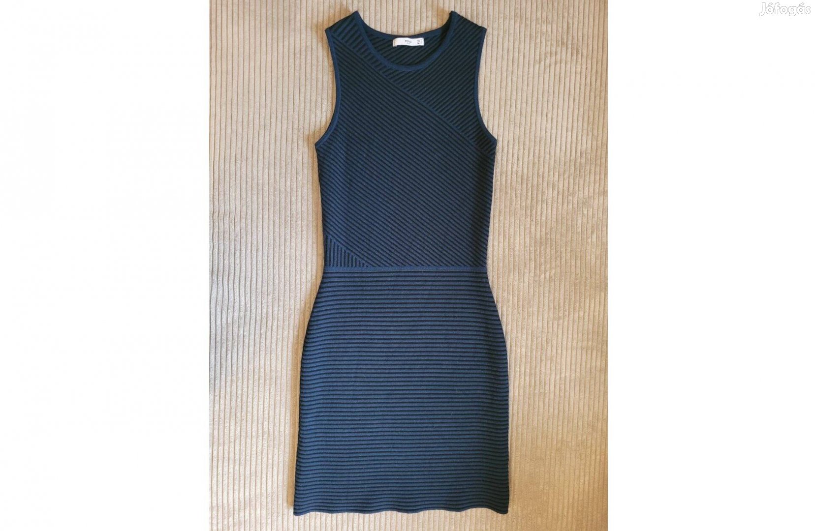 Mango SUIT kék csíkos testhezálló elegáns ujjatlan midi ruha - újszerű
