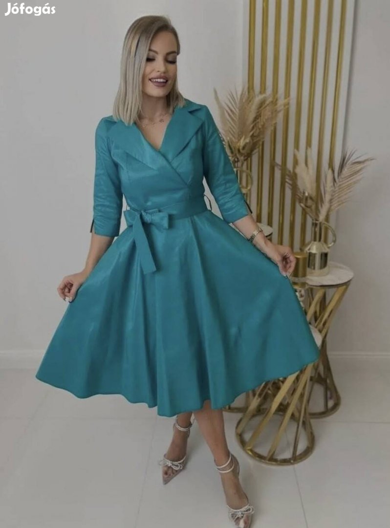 Margi türkizzöld koktélruha, egyszer viseltem esküvőn, kitisztíttattam. Hibátlan állapotban van. A képet a netről töltöttem le, kérésre küldök saját fotót.