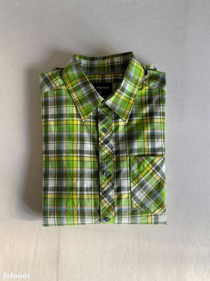 Eladó Marmot férfi outdoor ing, zöld kockás, kevert szálas organikus pamutból, kiváló állapotú, L-es méretben de XL-re is kényelmesen fittelhet.