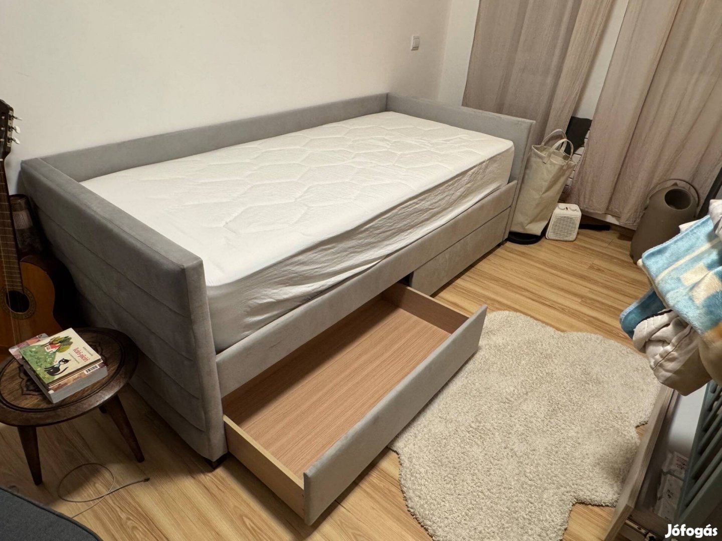 Eladó a képeken látható Marray világos szürke heverő, 2 rekesz ágyneműtárolóval. Belianiról lett vásárolva, ahogy a számlán is szerepel, 2026.09.22-én. Tehát a termék garanciális. Sosem volt használva, méret probléma miatt eladó. Mérete: 90x200-as. Az ágy anyaga bársony szövet. az alábbi linken minden információ megtalálható róla(a szürke nem kapható már belőle a beliani oldalon)