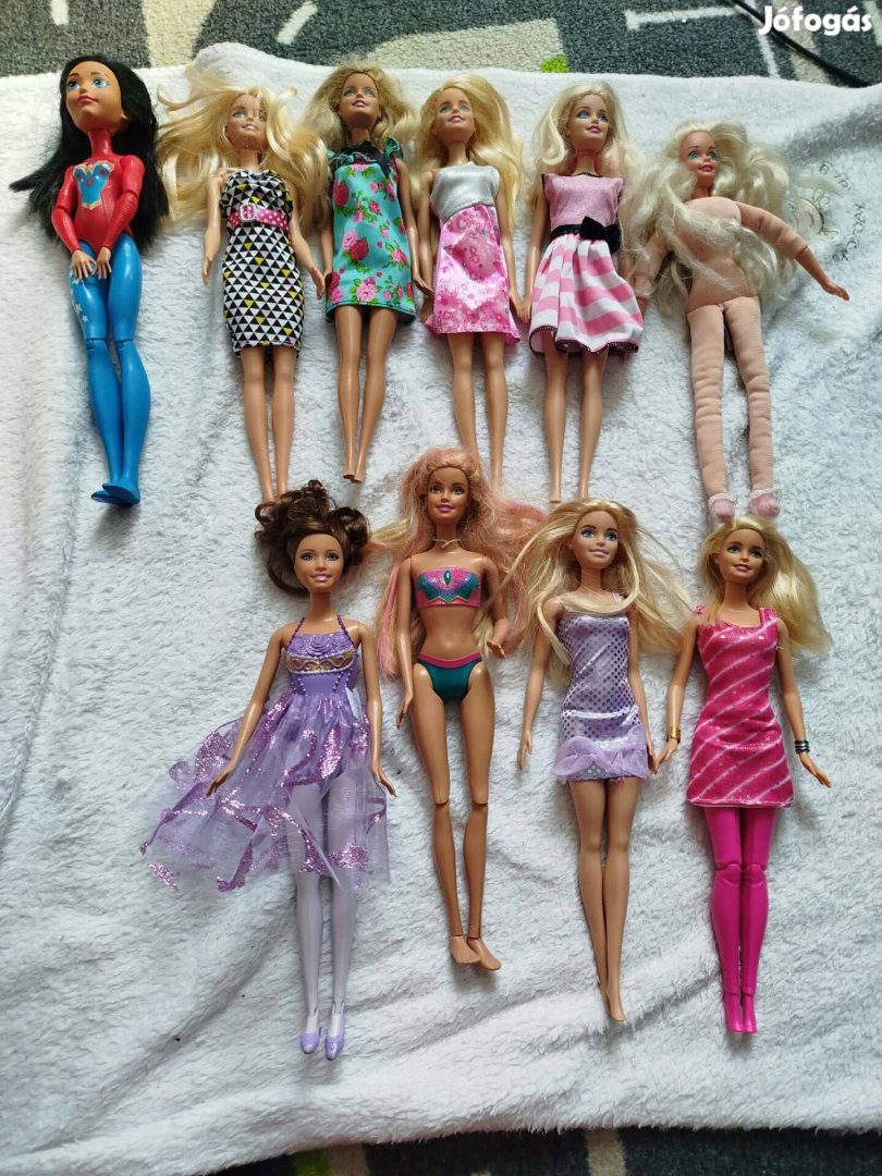 10 Mattel Barbie. Ép kéz, láb, nyak, vágatlan haj. 10000Ft egyben.