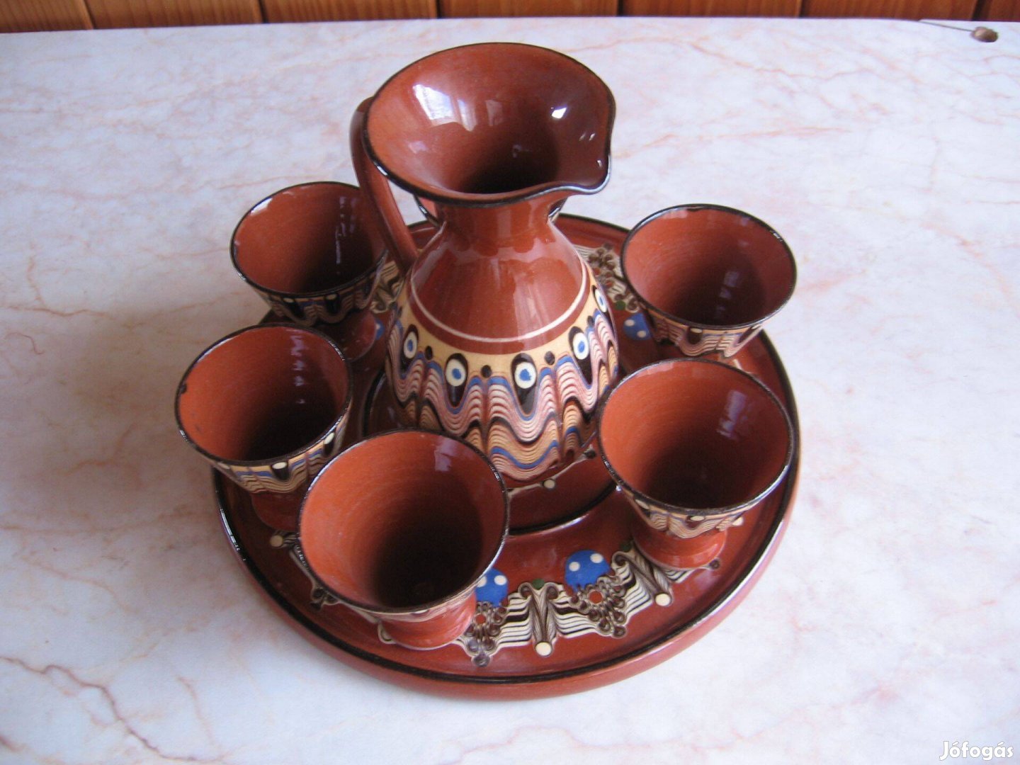 Mázas kerámia, rövidital kínáló szett - népművészet