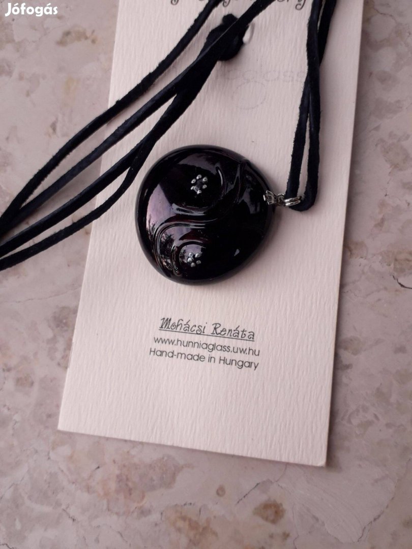 Mohácsi Renáta üvegékszer készítő medálja bőrszíjon.