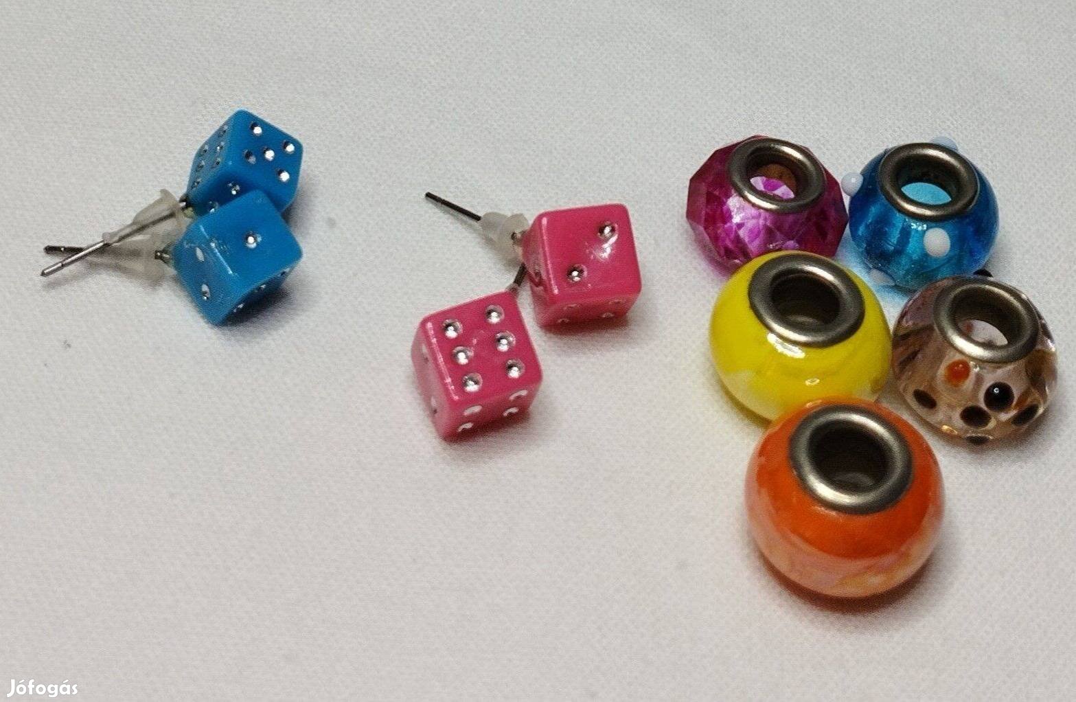 Mérete: golyók 1x0,8 cm (medál); dobókocka 0,7x0,7 cm (fülbevaló);