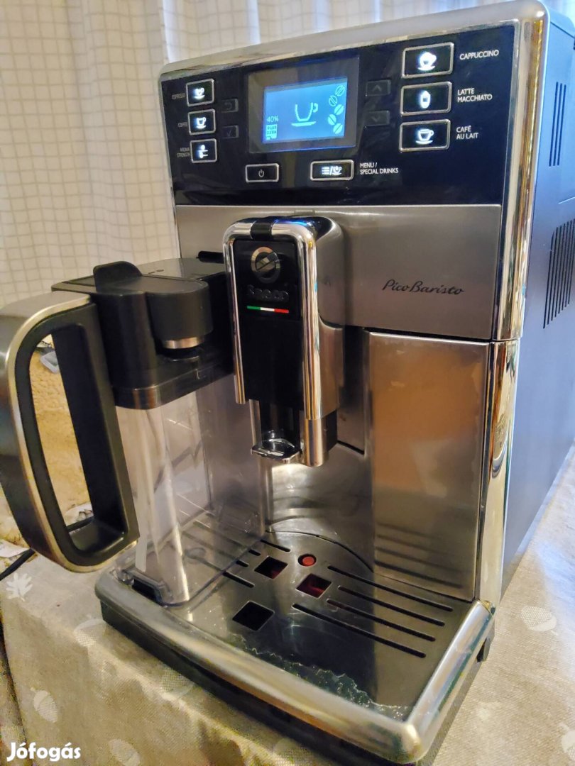 Megkímélt, rendszeresen karbantartott, keveset használt Saeco Picobaristo teljesen automata kávégép tejtartállyal és meleg víz fúvókâval.