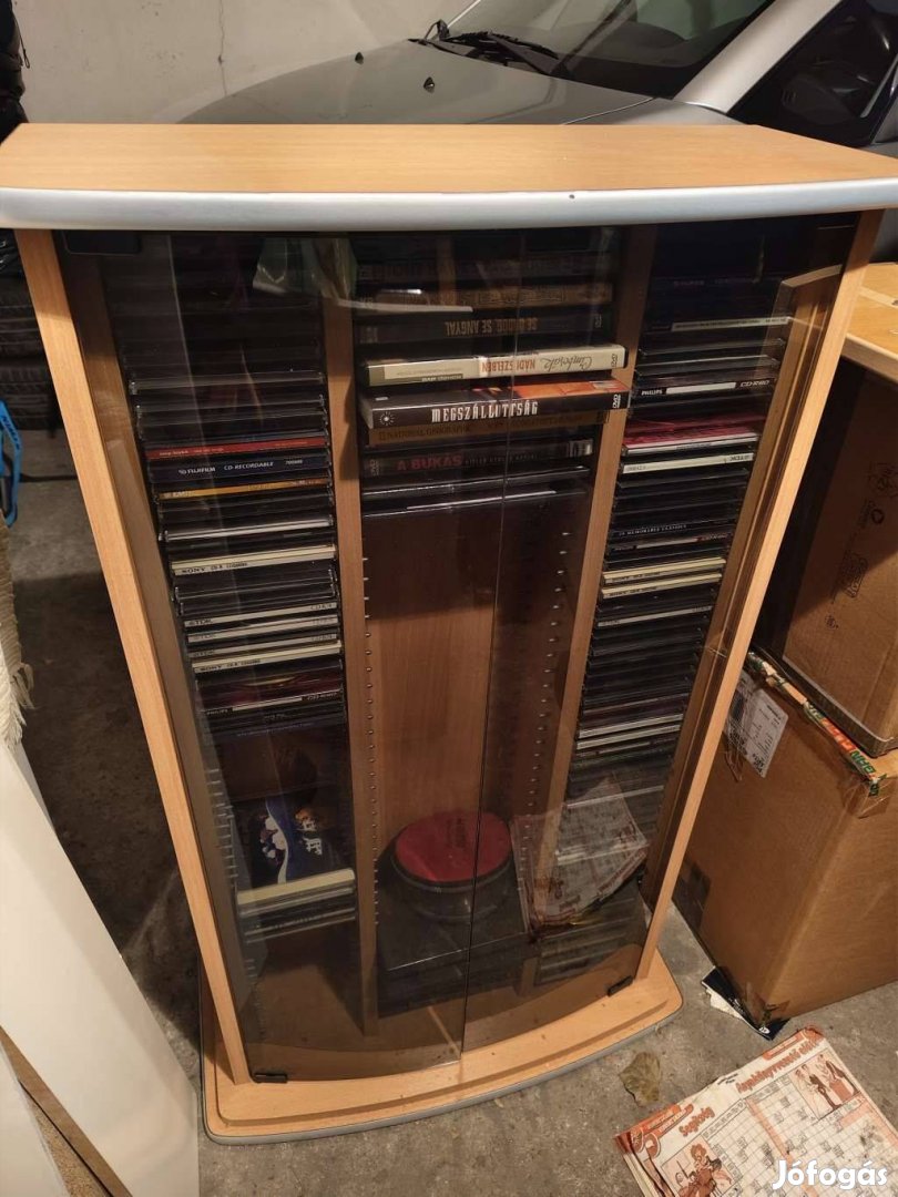 CD tárolására alkalmas, üveges, magasított szekrény eladó!