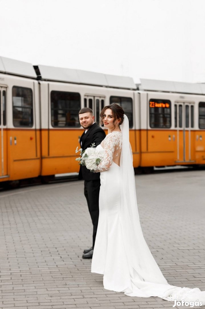 Eladó egy csodaszép, letisztult stílusú menyasszonyi ruha.