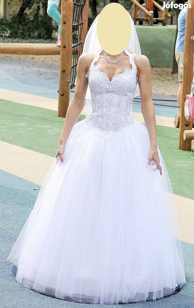 Esküvői ruha, 168cm, 56kg-os lányon volt. Egy alkalommal volt használva.
