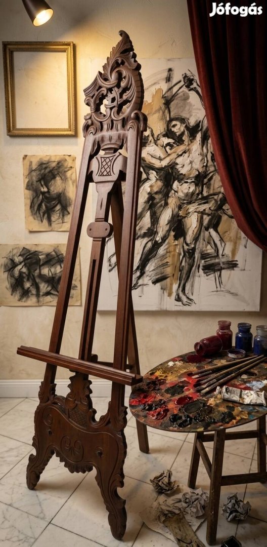 Eladásra kínálok egy lenyűgöző kivitelezésű, bécsi barokk stílusú festőállványt, amely nem csupán egy használati tárgy, hanem bármely tér méltóságteljes ékköve.