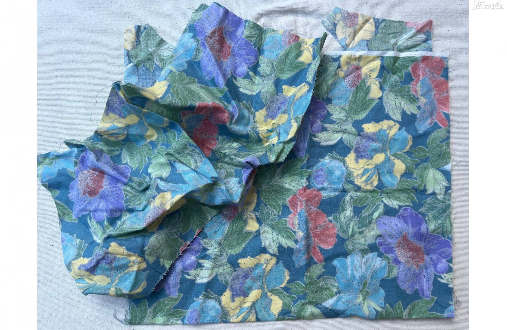 Színe: kék alapon, zöld, sárga, lila, világoskék, piros virágmintás.