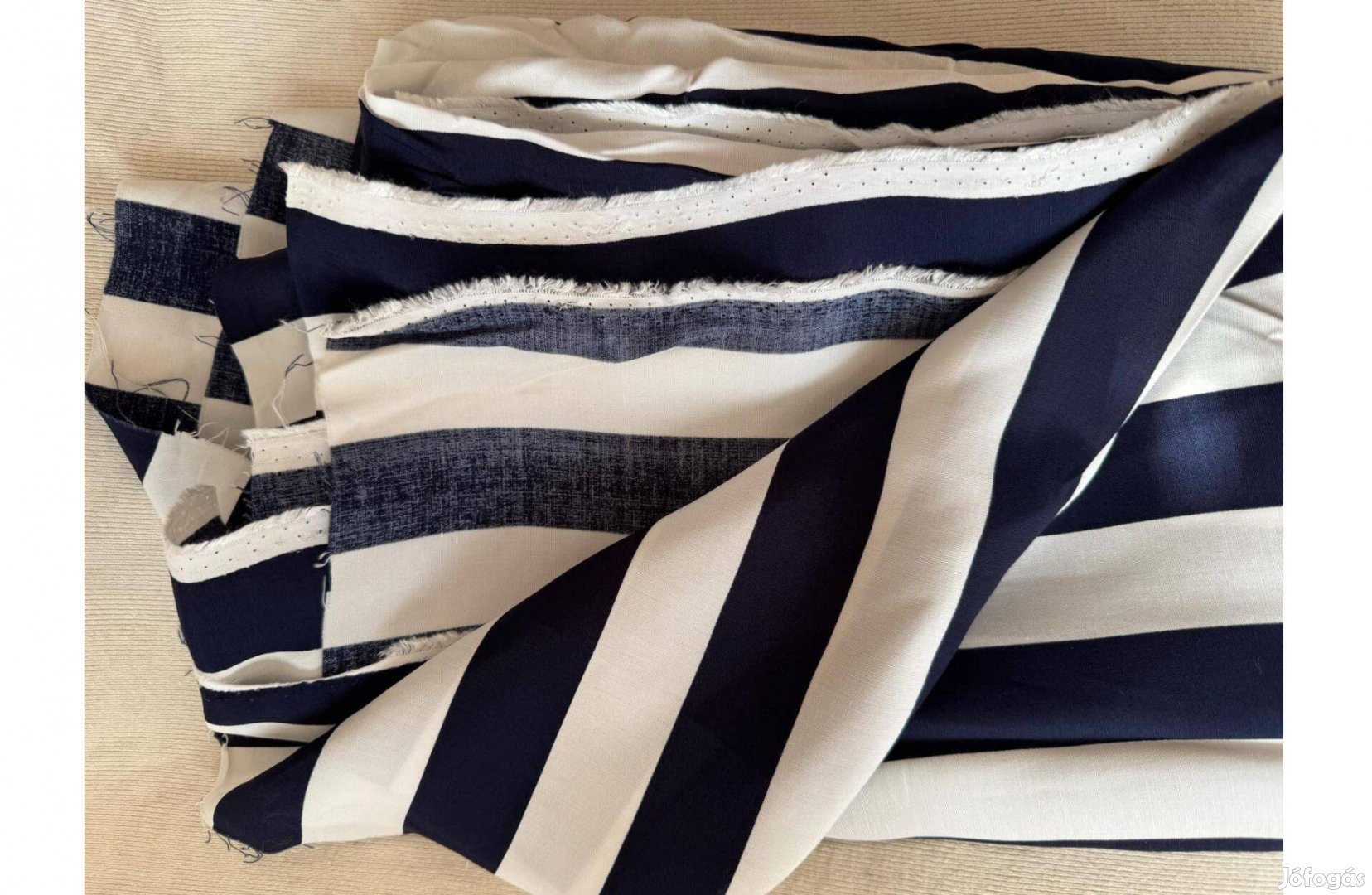 Méteráru, textil (selyemszerű, csíkos) sötétkék, fehér 1db