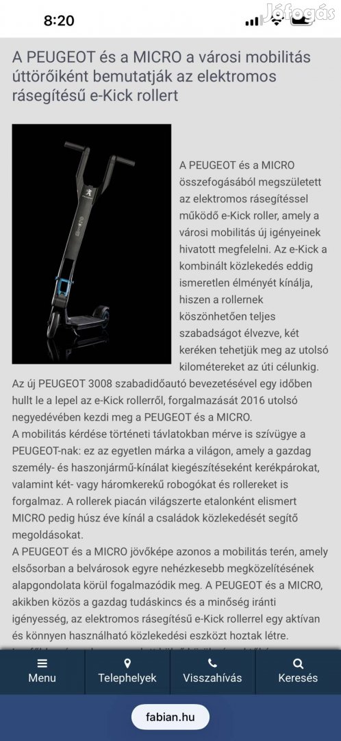 Igazi ritkaság Micro Peugeot elektromos roller új akkumulátorral, autós töltővel eladó