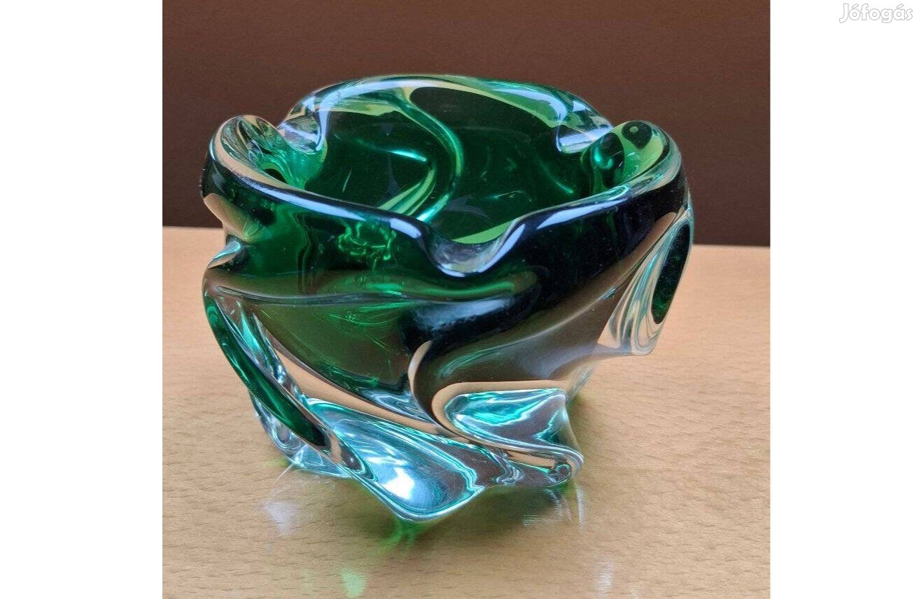 smaragdzöld színű vastag falú üveg hamutálja