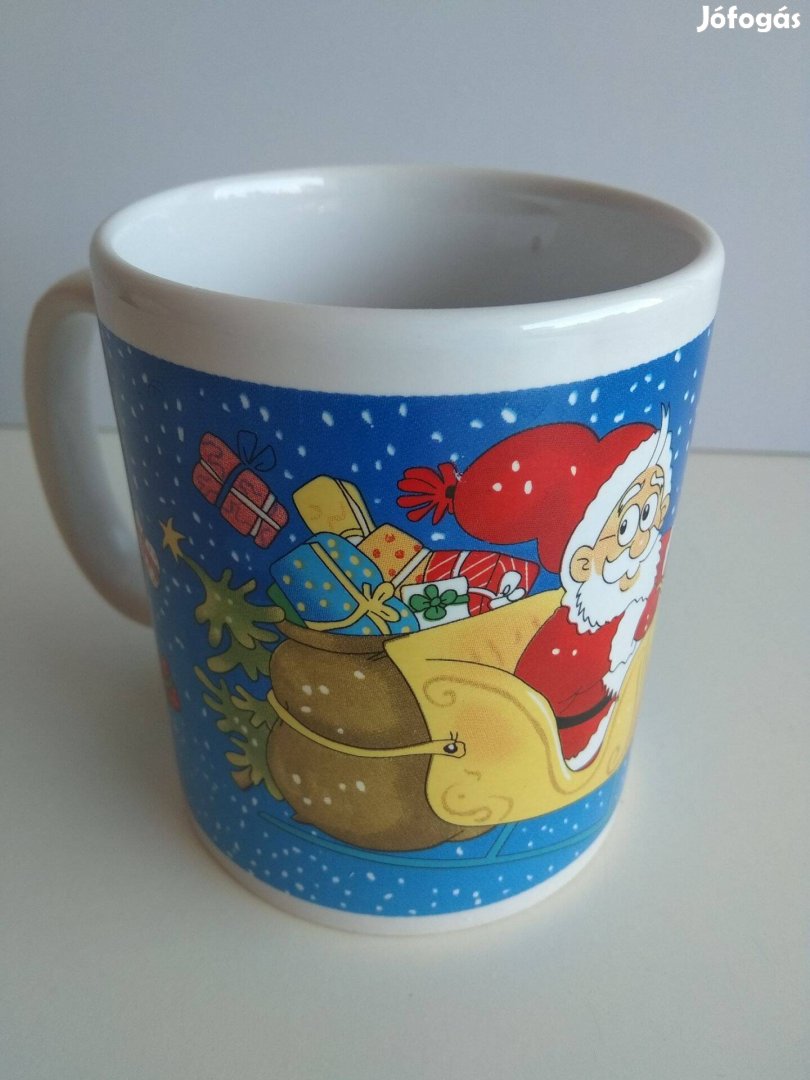 Mikulás bögre Tél apó Rudolf pirosorrú rénszarvas repülő szán 3 dl