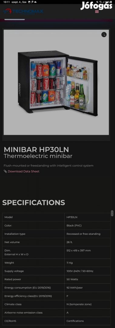 Minibár hütőgép új Technofrost HP30LN Akciós