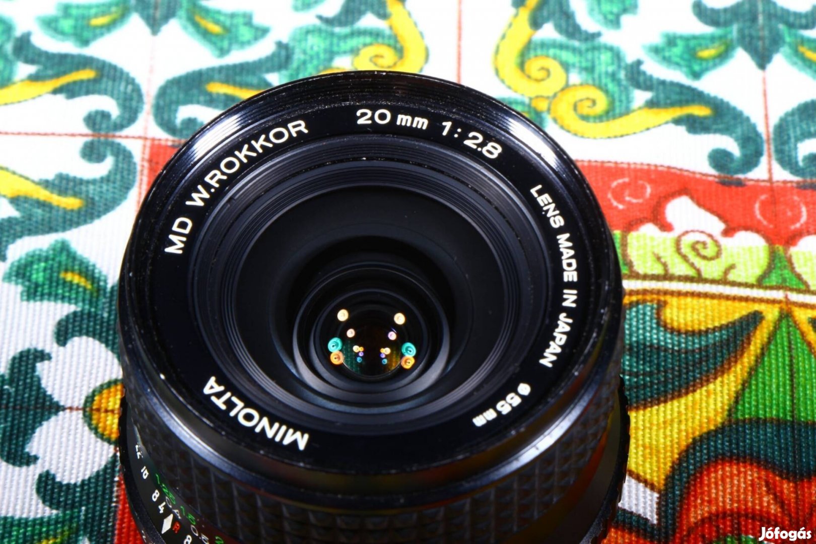 Minolta md 2.8 20mm objektív, nagyon szép állapotban. Mindene tökéletesen működik.
