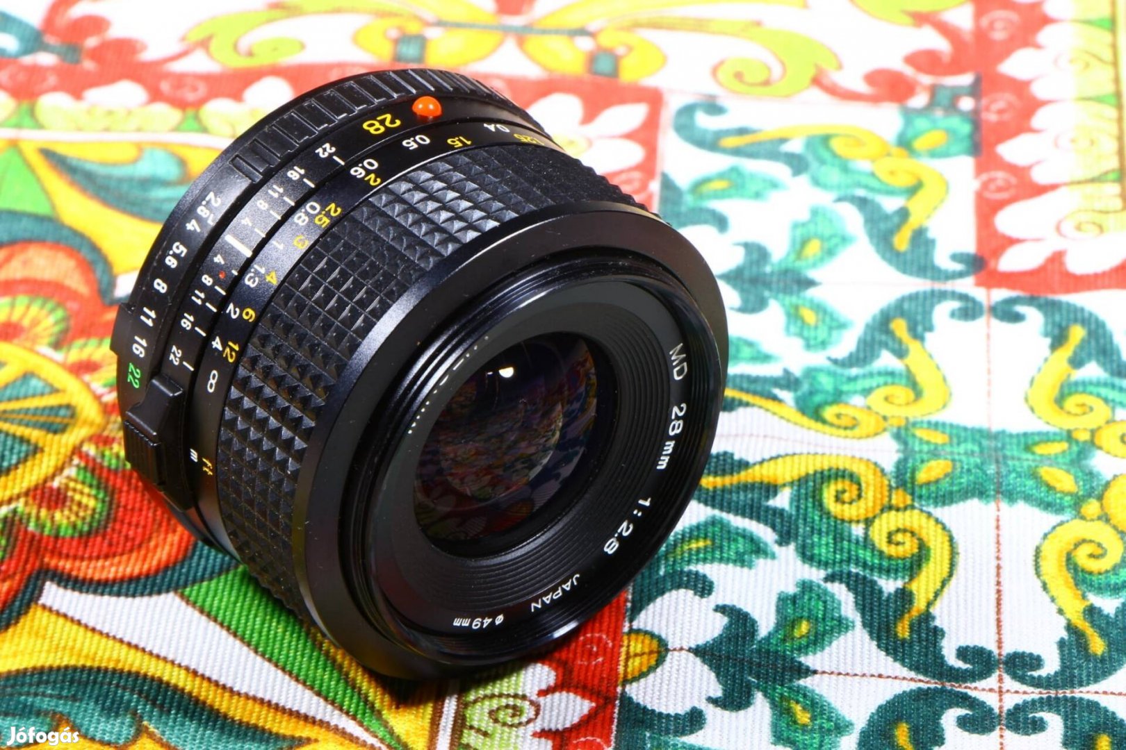 Minolta md 2.8 28mm objektív, újszerű állapotban. Mindene tökéletesen működik, a lencséi gomba és karcmentesek.