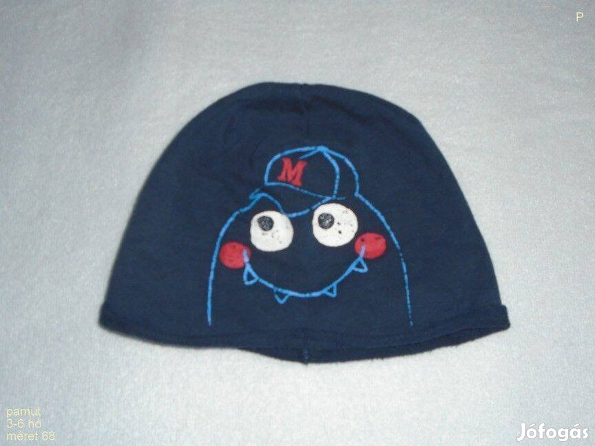 Mintás kék pamut sapka 3-6 hó (méret 68)