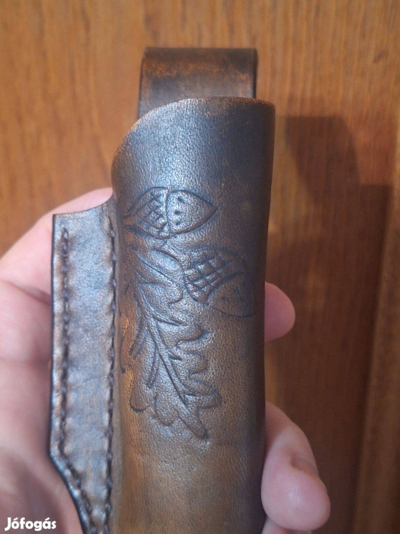 Eladó egy általam készített ,tölgyfalevél és makk mintás ,barna,bőrből készült tok.