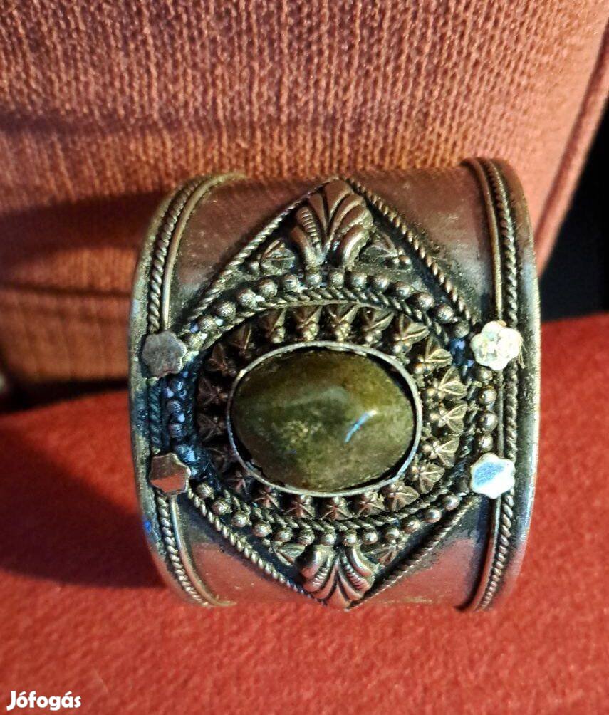 Misztikus zöld köves karkötő kézműves hatású, egyedi ékszer Mérete: 6.5x 5.5 cm.