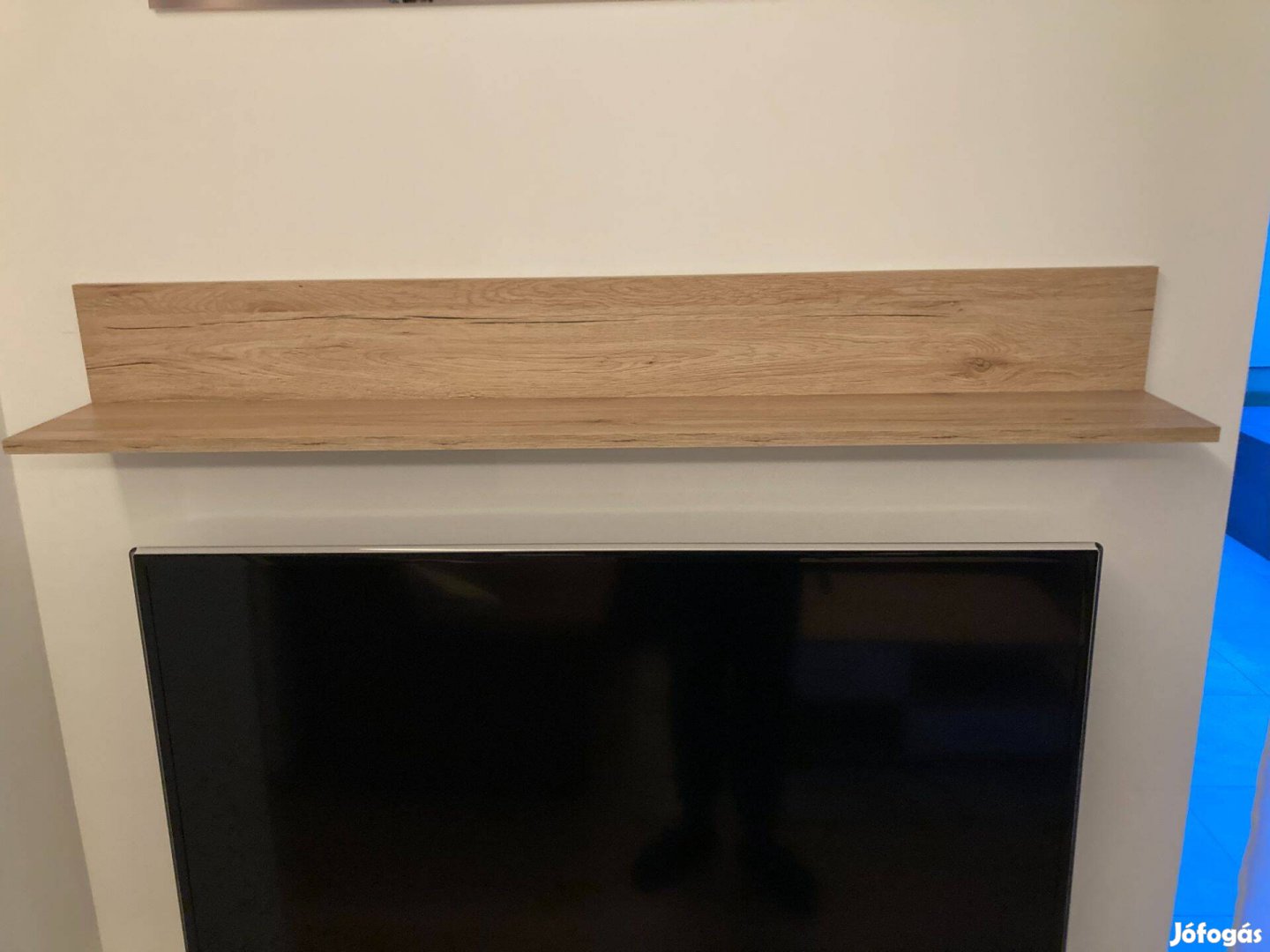 Tölgyfa színű Möbelix falipolc Malta San Remo dekorral, 2-2 db Magasság 18 x Hossz 128 x Mélység 20 cm (Möbelix cikkszám: 1803031817) és Magasság Magasság 18 x Hossz 180 x Mélység 20 cm.